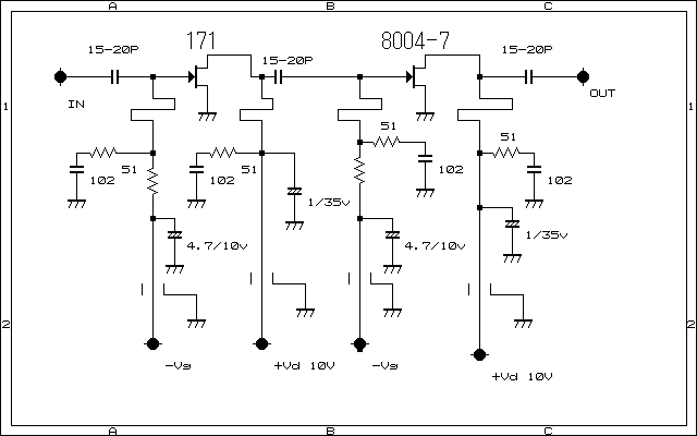 ドライブ FLL171 Vd 10V ファイナル NE8004-7 Vd 10V FLL171-FLL351基板使用(セブロン電子製) ケ−ス RX用(セブロン電子製) 入出力特性 IN (mW) OUT (W) 250 2.1