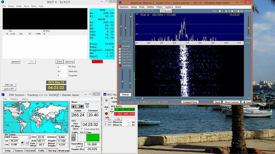 しかし本日DL0SHF 10GHzビーコンの「500W出力」が出ており を私はこの局のHi-Powモードを初めて聞きました。 こんなに「強烈なEME信号」は過去に聞いた事がありません。 スペクトランを添付します。