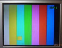 DATVの場合一度映って信号が無くなっても前の画像が残っていて静止画の場合紛らわしい事が有ります。 信州のミーティングでも少し話題になりましたが、デジタルテレビのカラーバーは流れる様な画像(まだ見た事は有りません)との話でした。 手持ちのロジックICを使って頭の体操をしました。 ロジックICなのでキャラクターの様な物は出せませんが、大、小の四角の画像を嵌め込み左右、上下に二段動かしました。 丁度二重の渦巻き状に時計周りに動きます。 色も色々変わりながら動きます。 ただし、色は3.58Mが勝手に周波数が変動するのを利用しているので指定は出来ません。 3.58Mをバースト信号でロックすれば良いのですが勝手に色が変わるのも良いと思っています。 大きく周波数がずれると色が付かない事が有るので手動で変えられる様にしています。