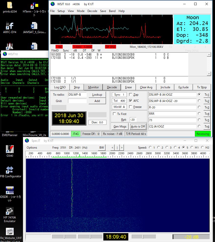 本日、未明1:00-3:00のパスが日本から使えそうなので、受信を試みました。