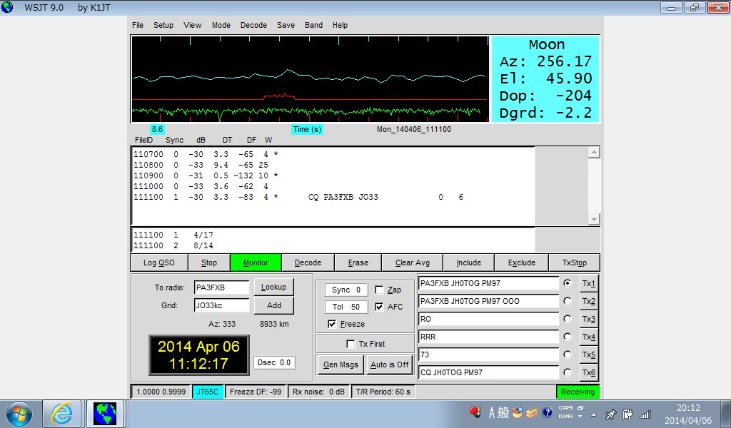 PA3FXB(3mDish 375W@Feed)の信号が見えました。