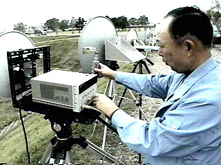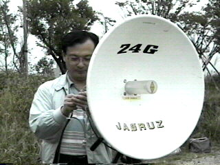 | 24GHz用アンテナを調整中のJA0RUZ |